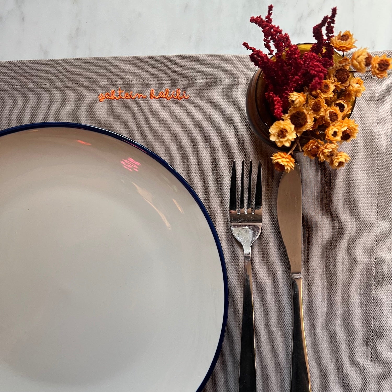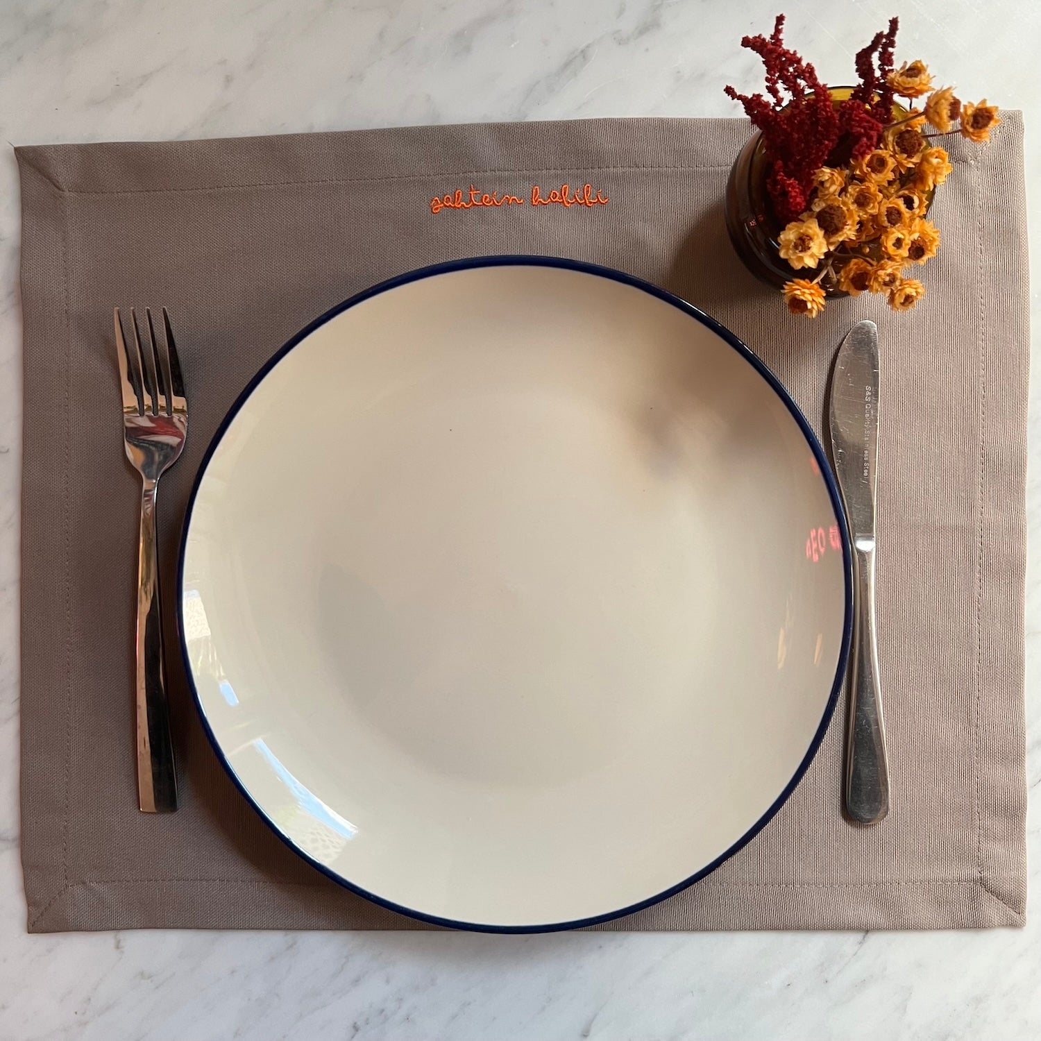 Another product to make your lunches and dinners more fun, more pretty, and definitely more Lebanese! Our Habibi (صحتين حبيبي) linen placemat is a beautiful piece to take your dinner parties to the next level.