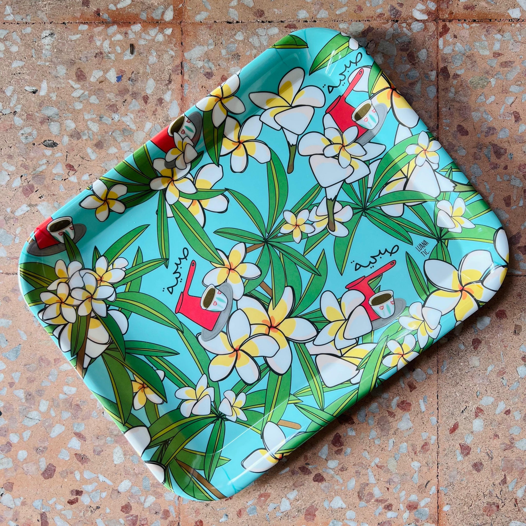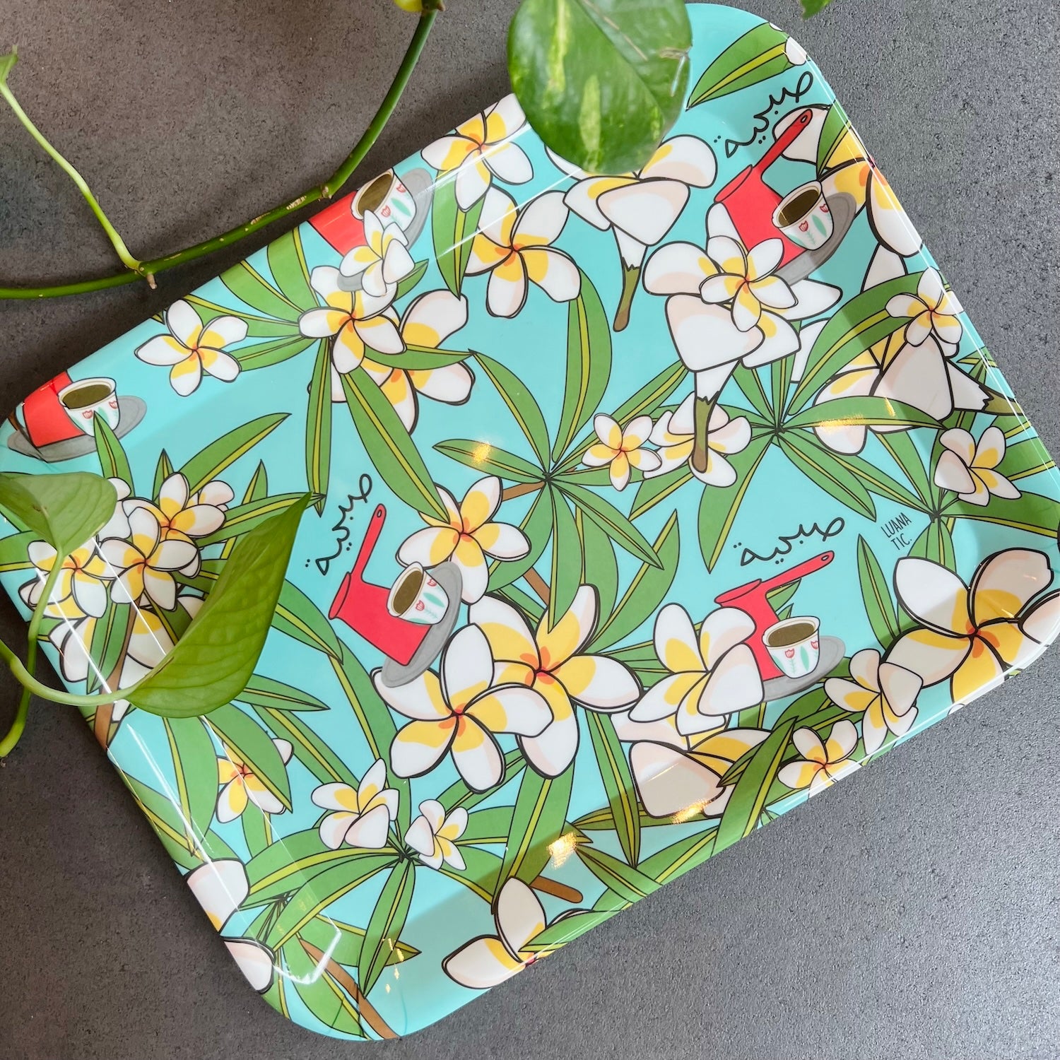 Serve your guests in style! Our new collection of melamine trays are vibrant, fun, and so full of life, to bring a piece of our culture right into your house. Full of brightness and color, our very blooming "Plumeria" design is the perfect addition to your collection.